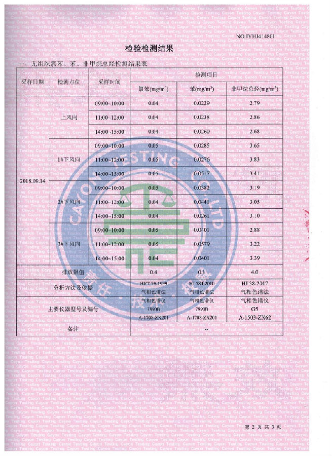 公司2019年2月13日至15日委托山东嘉源检测技术公司对vocs进行了检测,检测结果如下图:……